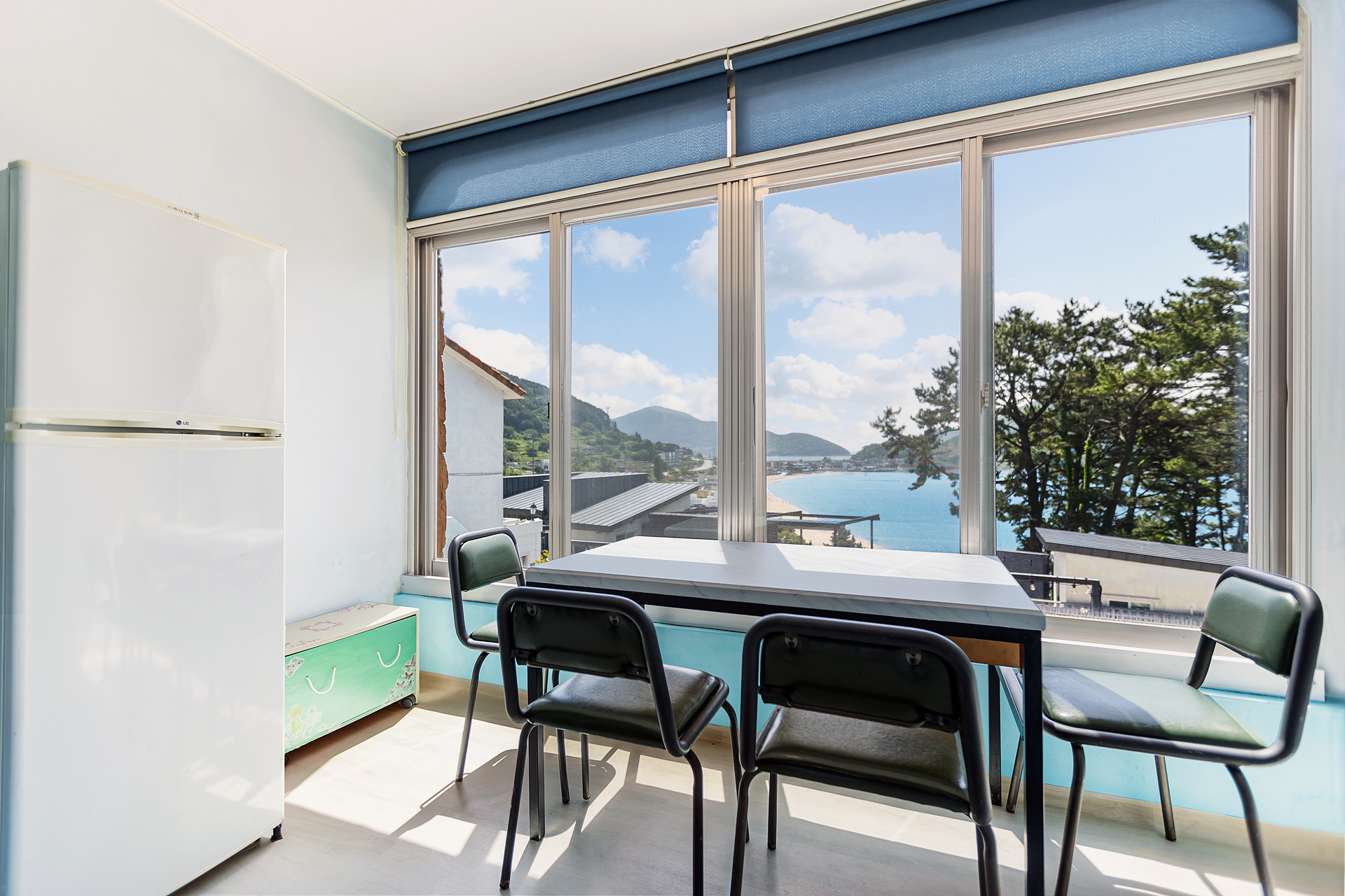 창 밖엔 푸른 휴식, 펼쳐진 파란 바다가 당신을 기다립니다.