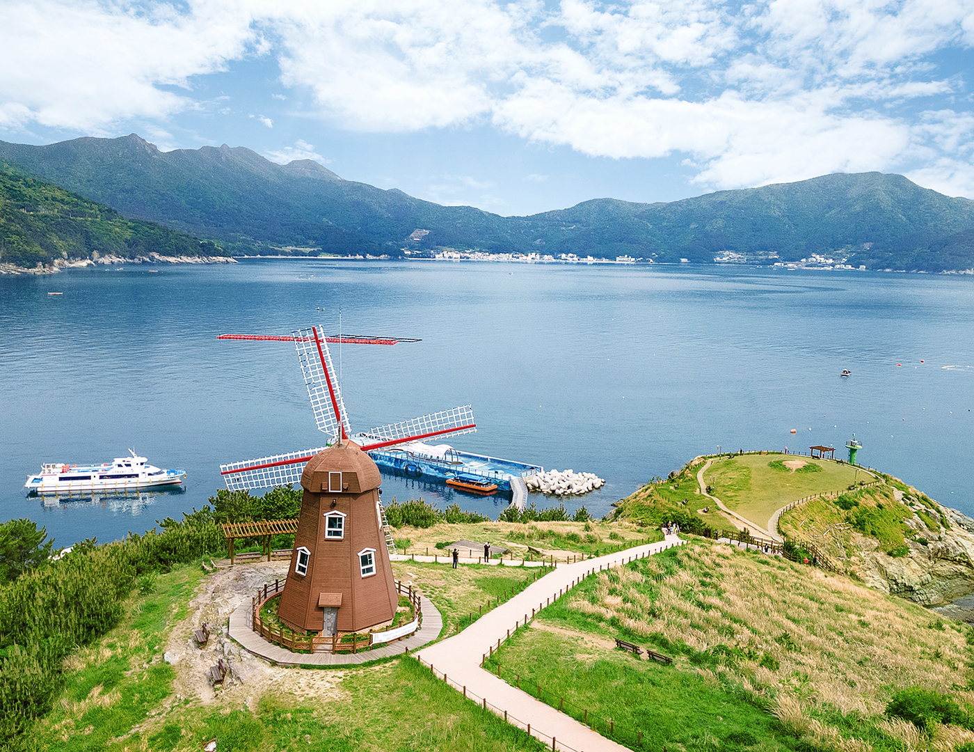 창 밖엔 푸른 휴식, 펼쳐진 파란 바다가 당신을 기다립니다.