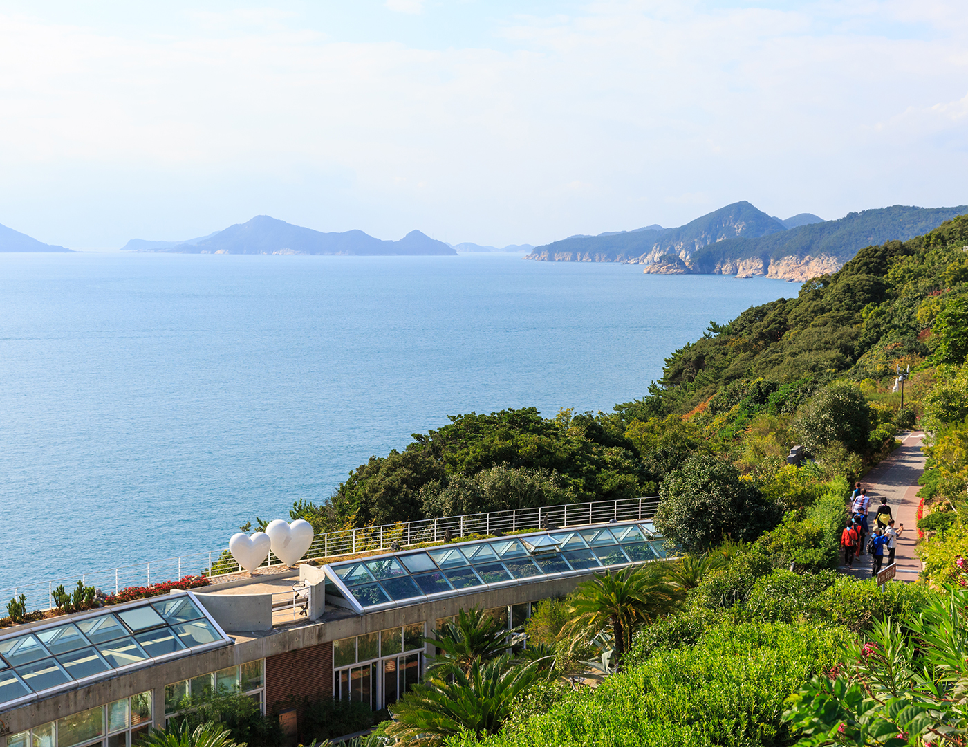 외도해상농원은 30년 전 한 개인이 섬을 사들여 정승을 들여와 관광농원으로 꾸몄습니다. 현재는 약 4만 5천여평의 동백숲이 섬 전체를 뒤덮고 있으며 션샤인, 야자수, 선인장 등 아열대 식물이 가득하고 은화엽유카리, 스파리티움, 마호니아 등 희귀식물이 눈길을 끌고 있습니다. 편백나무 숲으로 만든 천국의 계단과 정상의 버니스 공원도 이채롭습니다.